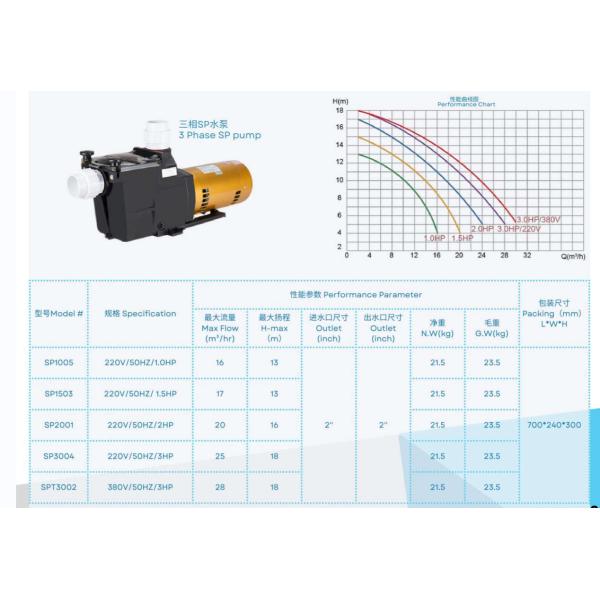 The SP1005 Swimming Pool Water Pump For Swimming Pool Water Fountain is widely using in Jetted bath tubs, spa pools, swimming pools, fountain ponds, massage stations and other water cleaning systems.
